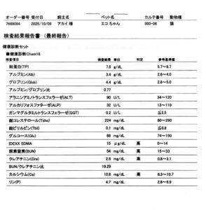先日、17歳半のエコちゃん♀も健康診断を受けました。