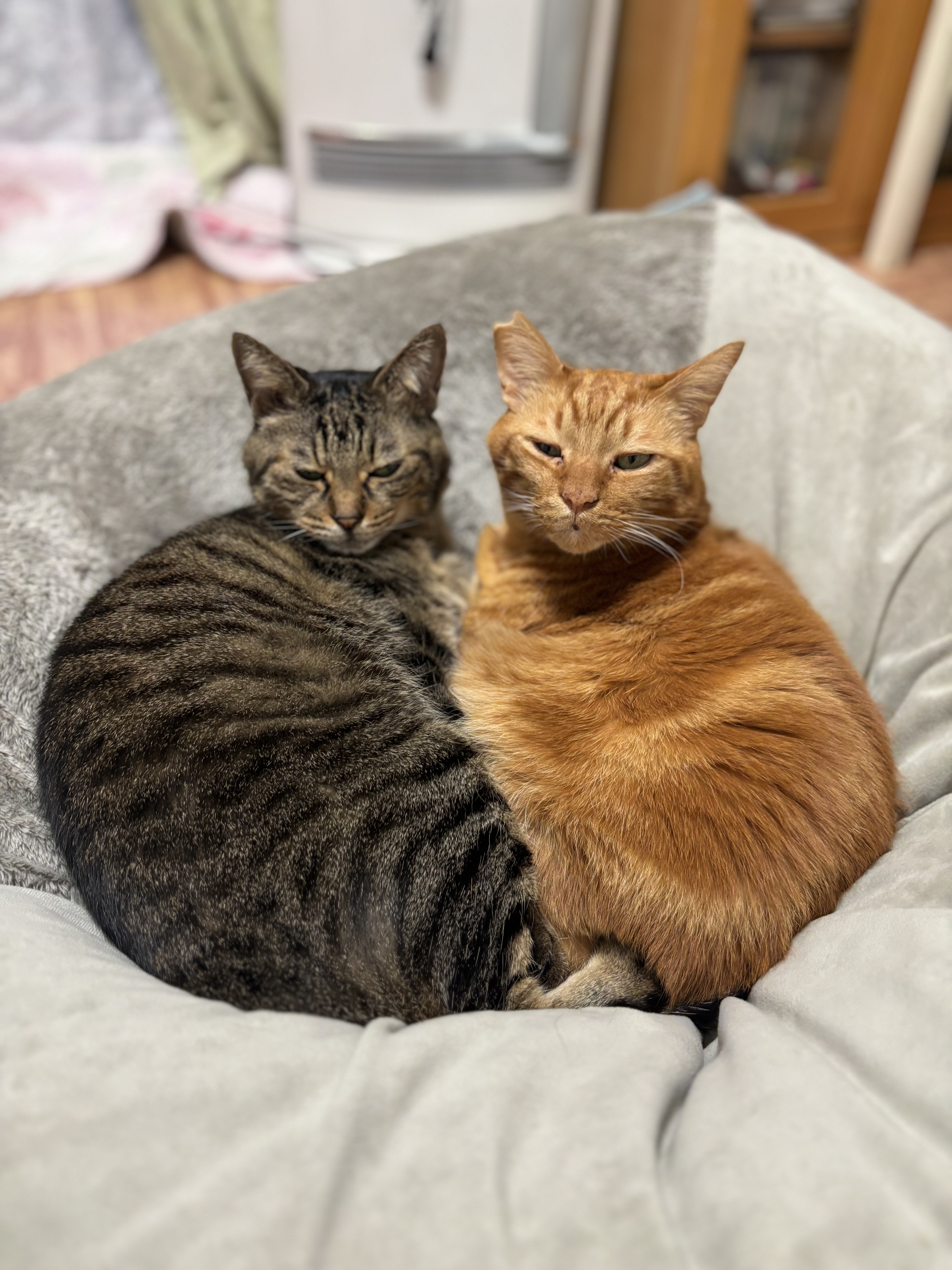 ノーラちゃん亡き後、猫が一緒に仲良く寝ている光景はここでしか見れません。