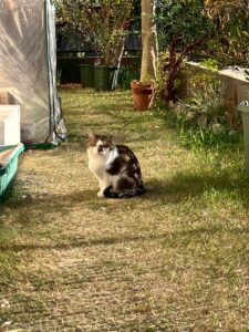 後ろに見えるニビールハウスは、にゃーちゃん♀の冬のお部屋です。
